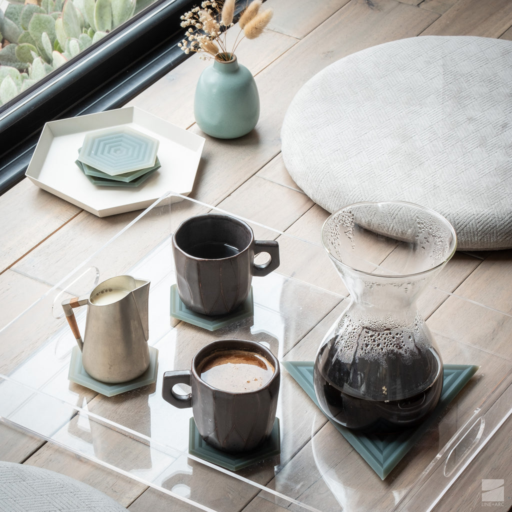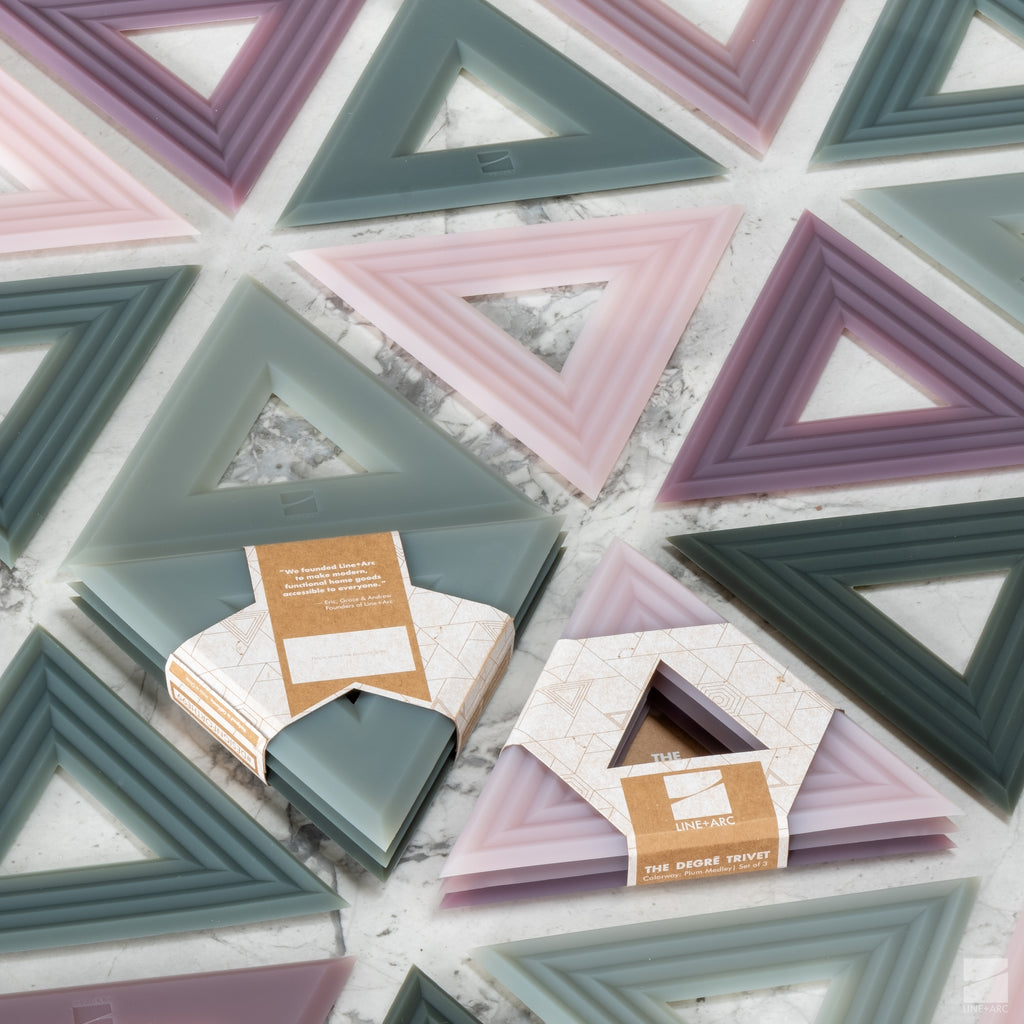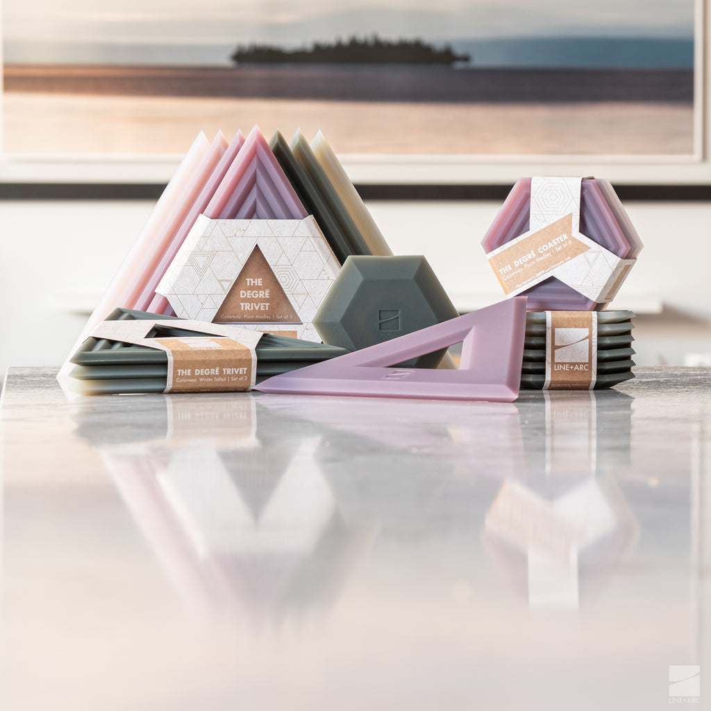 Grace & Eric designed the Degrē Collection because they couldn’t find coasters and trivets that were beautiful, functional, and easy to clean. “We wanted something that we could leave out on the table or counter all the time as a decorative touch,” explains Grace.
